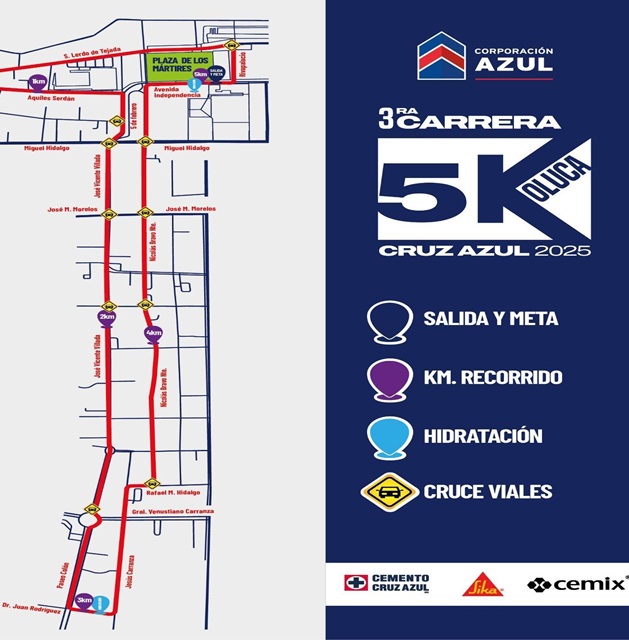 El Comité Organizador del 3er Carrera Atlética del Corporativo Cruz Azul Toluca 2025., invitan el próximo 31 de Agosto de 2025 a todos los atletas, clubes deportivos, equipos, instituciones, empresas y al público en general a participar en las distancias de 5k en el Municipio de Toluca, Estado de México.