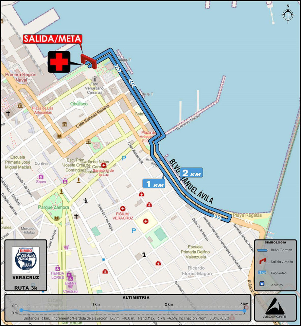 Lugar de salida y meta: En el Malecón, frente al Hotel Emporio Veracruz.