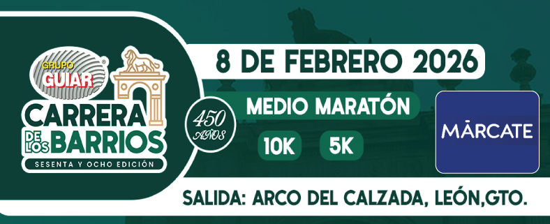 El Comité organizador de la Carrera de los Barrios y Maratón León, junto con CODE y COMUDE te invita a la 68 edición de la Carrera de los Barrios Guiar 2026, patrimonio de León.