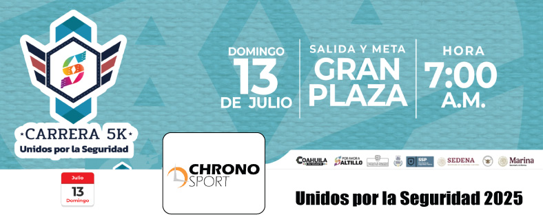 Estadio Francisco I. Madero (Saraperos) Blvd. Jesús Valdez Sánchez 1-Int. B, Topochico, Saltillo, Coahuila, Mexico21k FALTAN : ACERCA DEL EVENTO ORGANIZADOR: Chronosport - Vitti Logistics Email: medallas@chronosport.mx FECHA: Domingo 02 de febrero de 2025. SALIDA: 7:00 am – Medio Maraton y 7:30 am – 7k LUGAR: Estadio Francisci I. Madero (Los Saraperos). Saltillo, Coahuila. DISTANCIA: 21 mil 097.5 metros. Medido y certificado por un medidor de […]