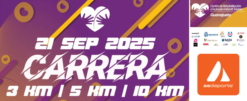 CRIT Guanajuato Av. Siglo XXI, No. 1400, Col. Predio Los Sauces, Irapuato, Guanajuato, Mexico3k, 5k, y 10k ACERCA DEL EVENTO ¡Bienvenidos a la Carrera Atlética Teletón 2025! www.asdeporte.com es un medio de difusión y promoción de eventos deportivos, así como una plataforma para la captación de inscripciones al servicio de los organizadores de eventos en general. Datos de contacto con el organizador. Teléfono(s): 4626068621 E-mail: carrera.crit.gto@teleton.org.mx Para dudas […]