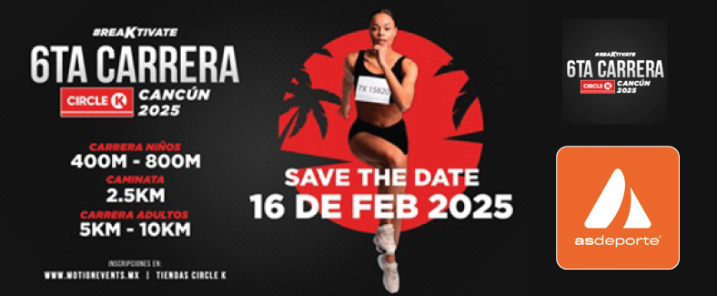 Malecón Tajamar, Cancún Av. Rbla. Fonatur, Zona Hotelera, Cancún, Quintana Roo, Mexico5k, 10k, y 21k. ACERCA DEL EVENTO ¡Bienvenidos al Medio Maratón de la Mujer 10ma Edición Cancún 2025! www.asdeporte.com es un medio de difusión y promoción de eventos deportivos, así como una plataforma para la captación de inscripciones al servicio de los organizadores de eventos en general. Datos de contacto con el organizador. […]